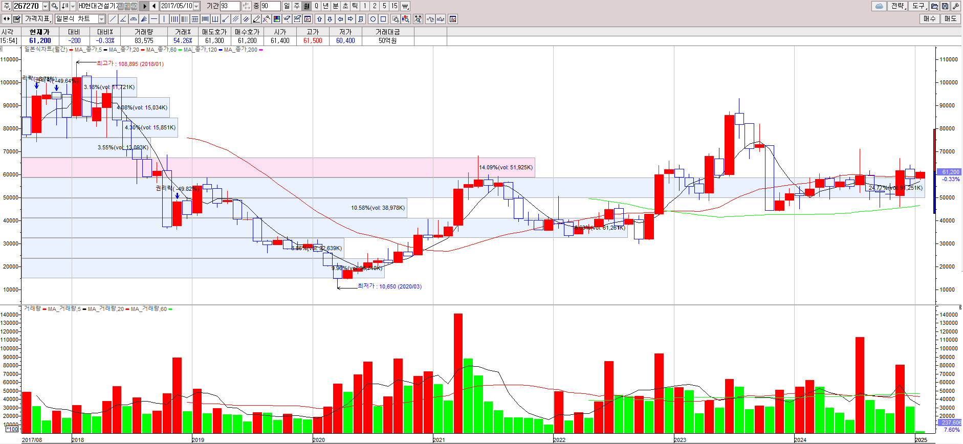 특히, 우크라이나 전쟁 종식 기대감과 재건 프로젝트 참여 가능성은 동사의 주가 상승에 강력한 모멘텀이 될 것입니다. 현재 주가는 부담 없는 구간으로, 분할 매수 전략을 통해 장기적 관점에서 접근하면 유망한 투자 기회가 될 것입니다.